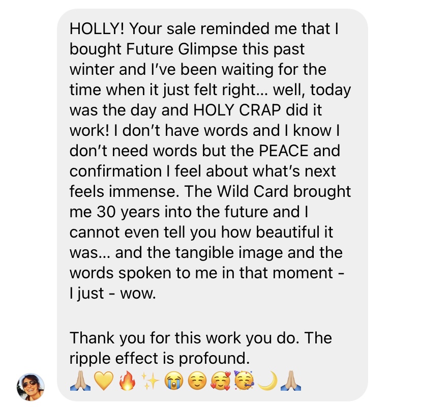 "I am so grateful for this transformative experience! I’ve used the recording twice now, and both times I had profound experiences that left me with peace and clarity about my future, and what to prioritize in the present moment. I plan on making this a monthly routine to stay on course, and gain deeper insight. What a beautiful way to connect with my higher self. Thank you Holly!"